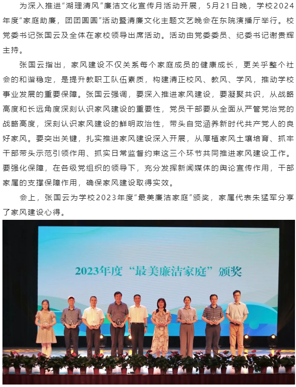 “家庭助廉,团团圆圆”活动暨清廉主题文艺晚会举行
