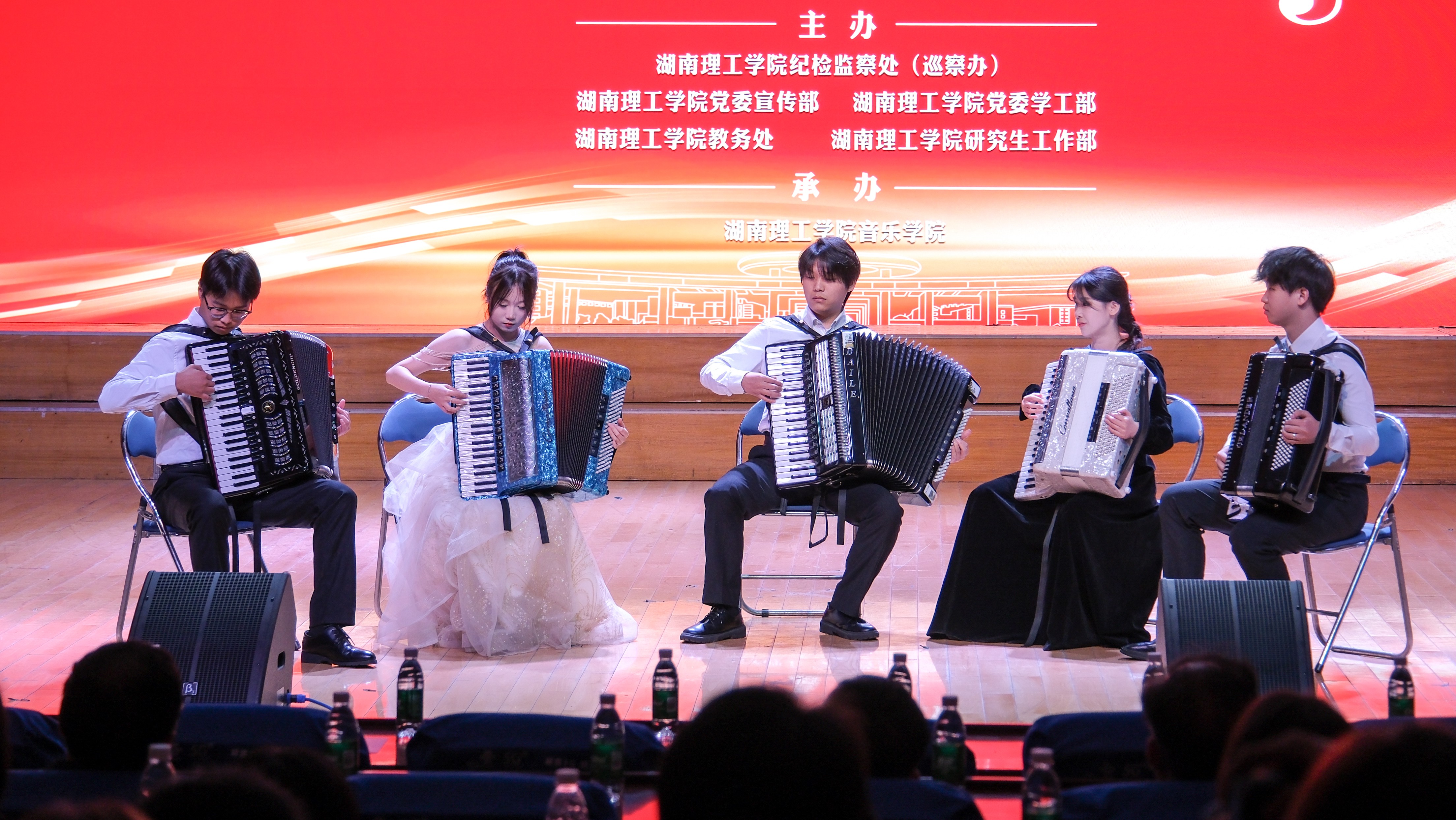 党委委员、纪委书记谢贵辉,党委委员、副校长刘长辉现场观看了音乐会。本次音乐会由纪检监察处(巡察办)、党委宣传部、党委学工部、研究生工作部、教务处联合主办,音乐学院承办。