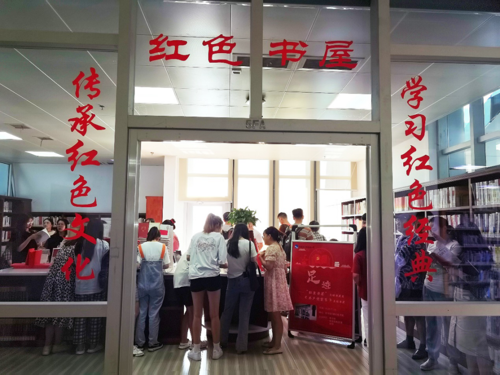 习近平总书记指出:“我们党带领人民在革命、建设、改革过程中锻造的革命文化和社会主义先进文化,为思政课建设提供了深厚力量。”图书馆善用红色资源、汇聚育人合力,将红色文化有机融入“大思政课”。图书馆与党委组织部、马克思主义学院联合共建的“红色书屋”不仅有着丰富的红色馆藏书籍,也是红色精神薪火相传的地方。打卡“足迹”红色主题书展,共同追寻“真理的足迹”;围坐一团分享《火种》故事,传递红色精神之美;共同观看示范微党课,筑牢红色防火墙;举办一场精彩的党课比赛,为党的生日献上一份厚礼……学校师生纷纷选择来红色书屋开展主题党日或“牵手工程”活动,在这里,熠熠生辉的红色文化更能浸润心灵,更能抒发爱党之情。