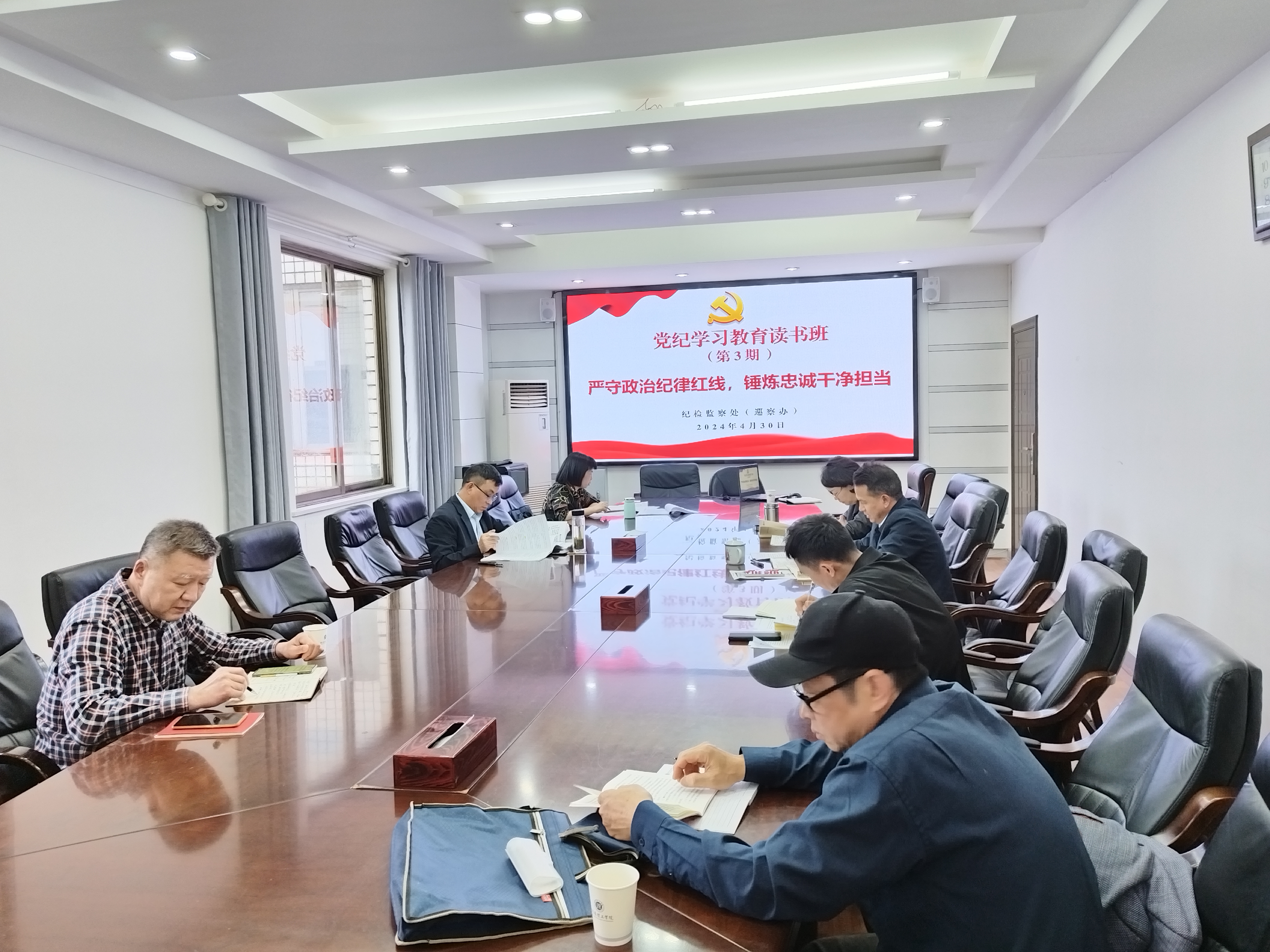 4月30日下午,纪检巡督党支部党纪学习教育读书班第3次学习在办公楼414会议室举行。校党委委员、纪委书记、驻校监察专员谢贵辉及纪检监察处(巡察办)全体人员参加,巡察办主任周红熳领学。