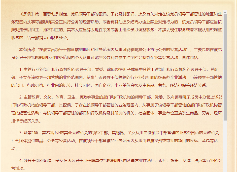 对配偶、子女及其配偶违规从业行为,党员干部应当予以纠正